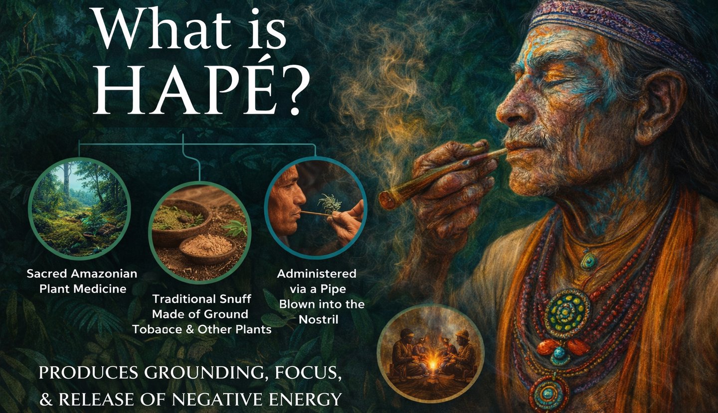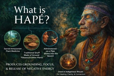 If you've been exploring plant medicine or attending breathwork circles lately, you've probably heard someone mention Hap'e (pronounced ha-PAY). Maybe you've seen those beautifully carved wooden pipes on an altar and wondered what they're all about. Or perhaps a friend shared their experience and you felt a quiet curiosity stir within you.